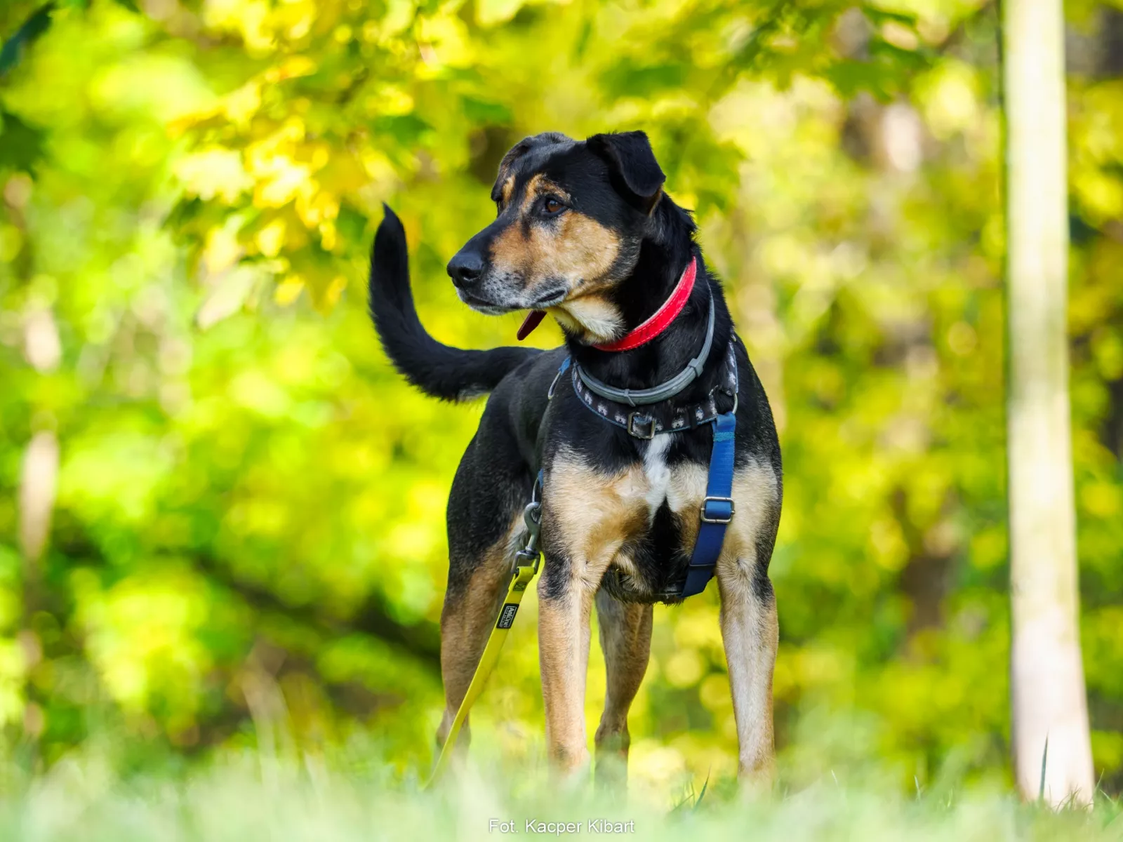 To już raczej psi senior (oceniamy go na 9 lat) i zachowuje się statecznie i spokojnie, choć uwielbia też biegać za piłką, przeciągać się szarpakiem i nadstawiać brzuch do głaskania.