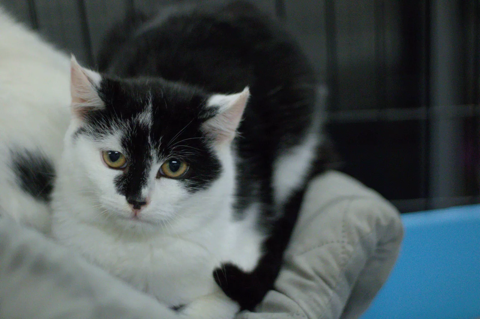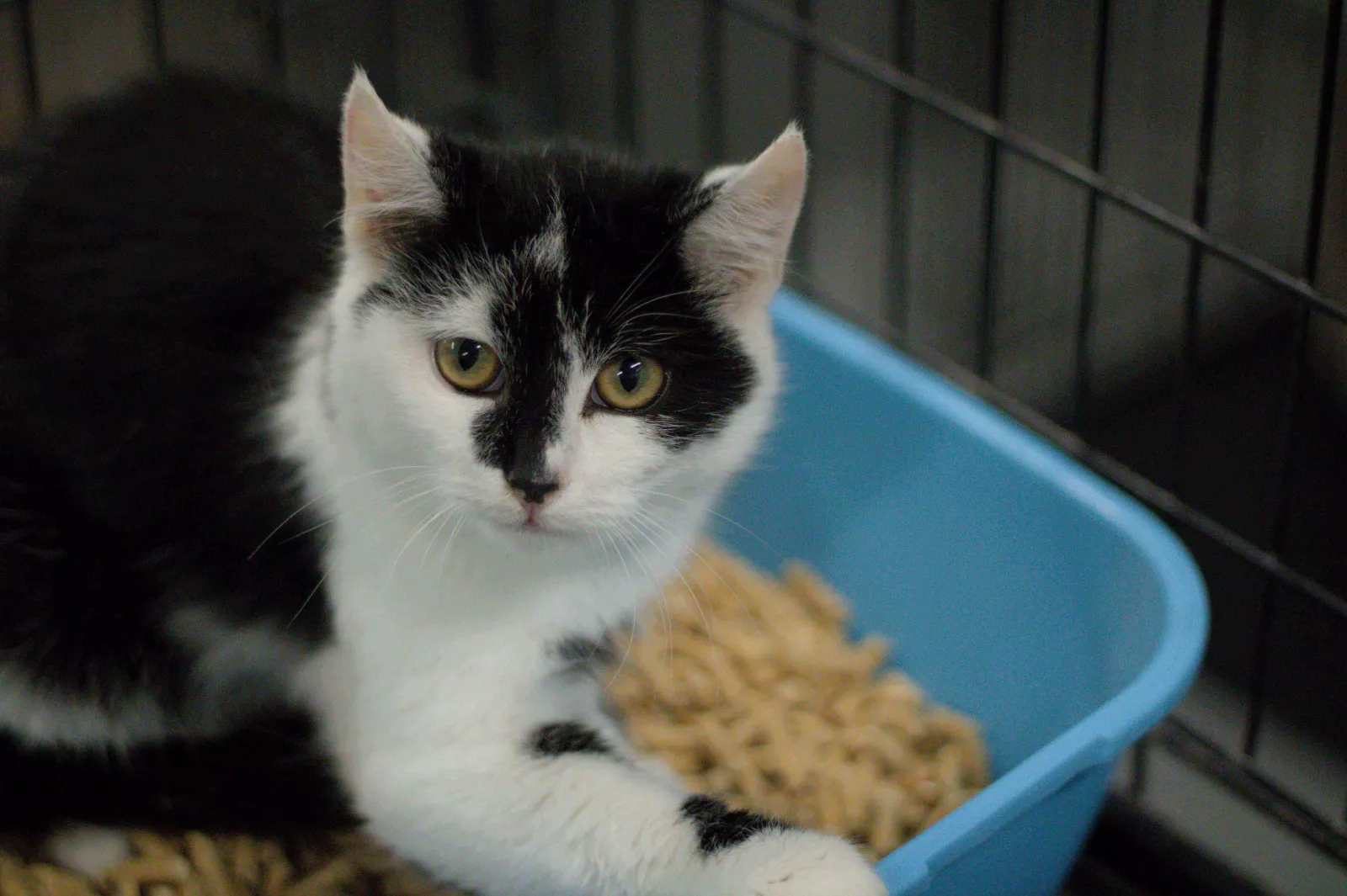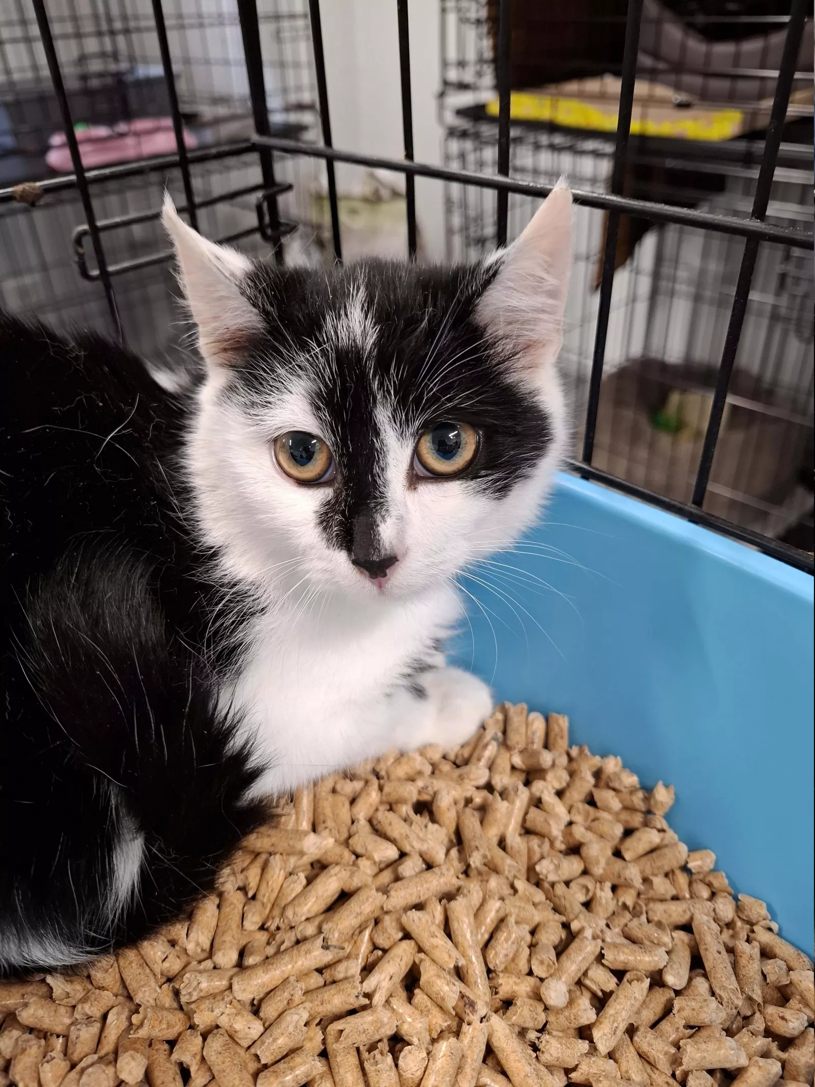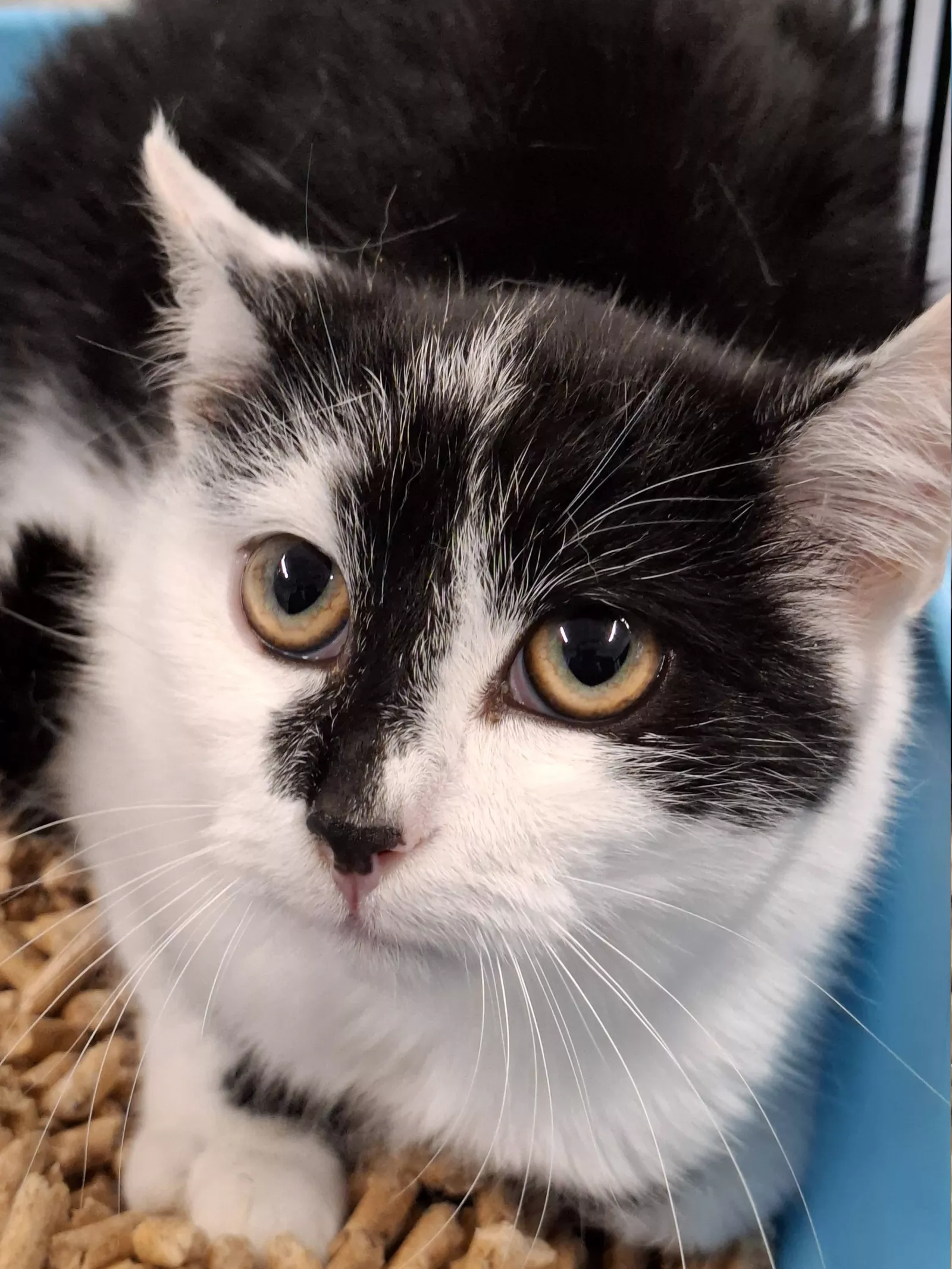 Paweł to młody kotek o przepięknym, czarno-białym futerku. Trafił do nas razem z bratem Piotrem (884/25) i to właśnie oni dają sobie wzajemnie wsparcie w trudnych chwilach. Dlatego marzymy, by znaleźli wspólny dom, w którym będą mogli dorastać razem.